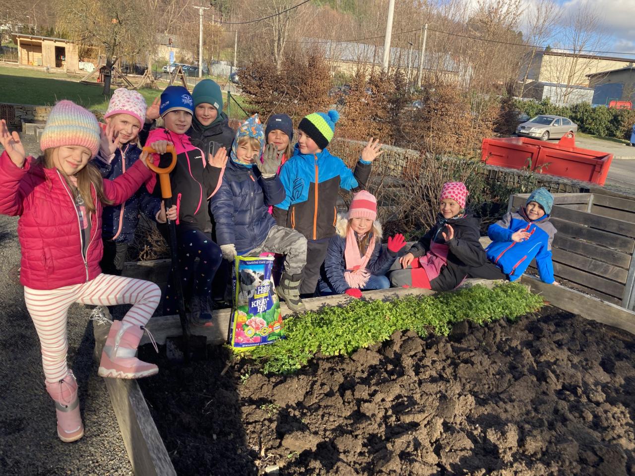 Připravujeme dárky na vánoční jarmark a zazimujeme naši školní zahradu a hřiště.
